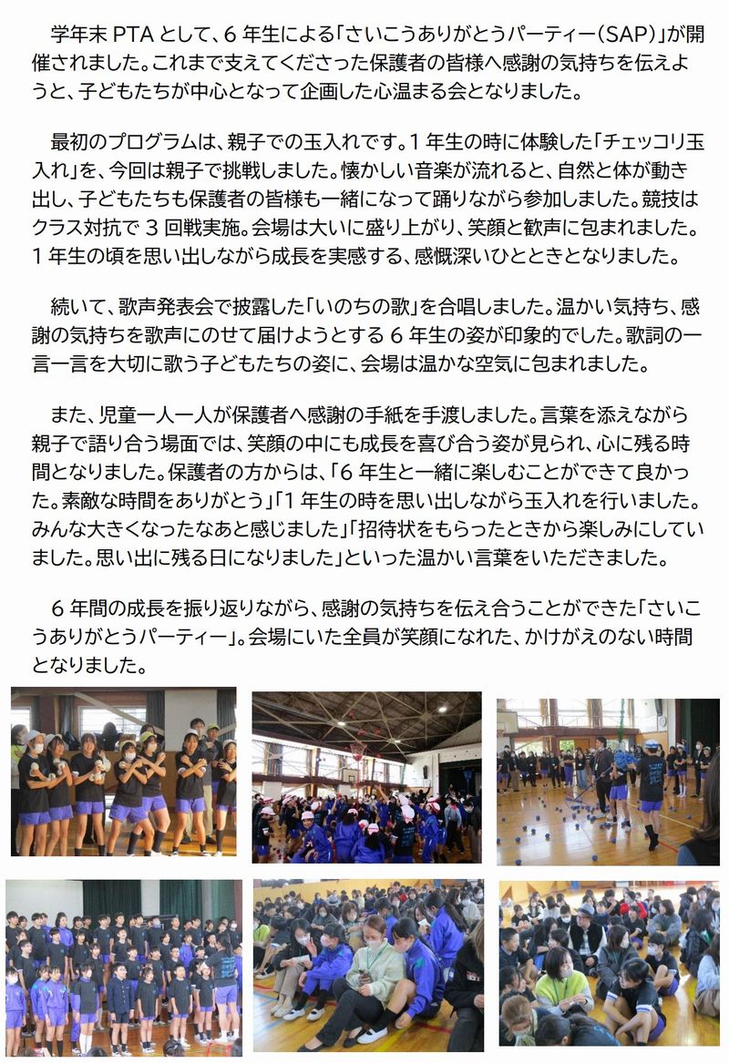 学年末 PTA 6 年生「SAP」開催(6年生)
