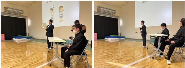 まず、1月の行事紹介を行いました。1月は高等部で同窓生との交流会があることや、中学部で職場見学が