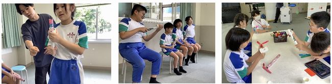 |  | うめ・さくら組Bグループでは「ものの仕組みと働き」を体験的に学習するために、ゴムを使ったおもちゃ作りに取り組みました。