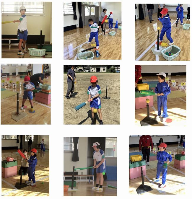 Aチームはより遠くへ飛ばすことを目標に、ボールをよく見て力いっぱいスイングしています。ゲームでは、飛距離に応じてポイントが入る仕組みになっていて、より遠くに飛ばしてたくさんのポイントをゲットして喜ぶ姿が見られました。