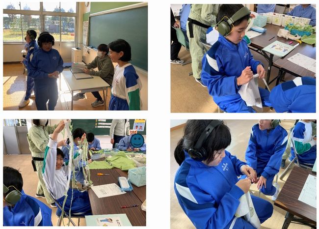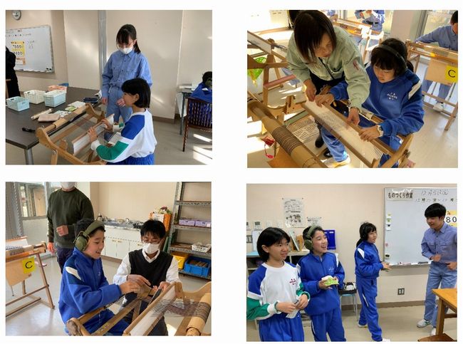 布を裂く作業では、精いっぱいの力を込める姿や、長くなった布を見て喜ぶ姿が見られました。また、織機での作業では、先生や先輩に教えてもらいながら、布を織っていき、笑顔で楽しく行うことができました。