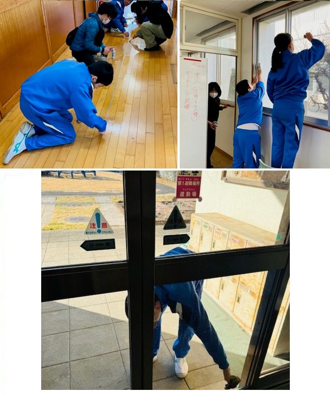 窓をピカピカに拭いてくれる人、床に貼ってあるシールを一生懸命はがしてくれる人、トイレや教室の棚、床をきれいに磨いてくれる人…。みんなそれぞれの場所で、一生懸命がんばってくれました。