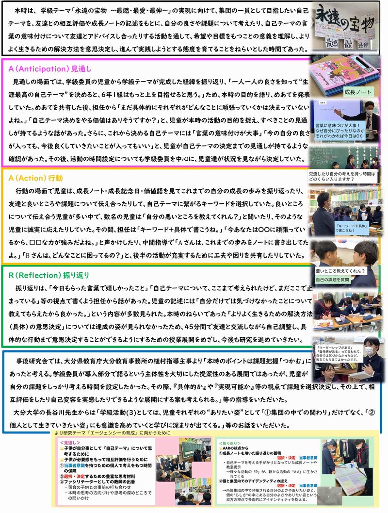 <学級活動(3)ア 現在や将来に希望や目標を持って生きる意欲や態度の形成)>