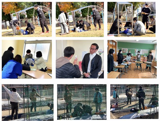 今回、頭部打撲や異物除去、農作業中の重篤な体調不良など、それぞれの学部の子どもたちを想定しながら場面設定しました。事故発生からの職員の動きや、応急処置の仕方、連絡体制の確認、119通報の練習などすることができました。また、放送機器の使用の仕方の確認・練習や、放送の聞こえ方の確認、近くに機器が無い場合の連絡の仕方や対応などについても取り組みました。